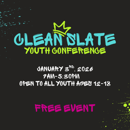 The Clean Slate Conference is a one-day youth gathering designed to ignite renewal, freedom, and unity among the next generation. Taking place on the first weekend of the new year, this event is a FREE conference open to all youth ages 12–18 from every church, background, and walk of life.